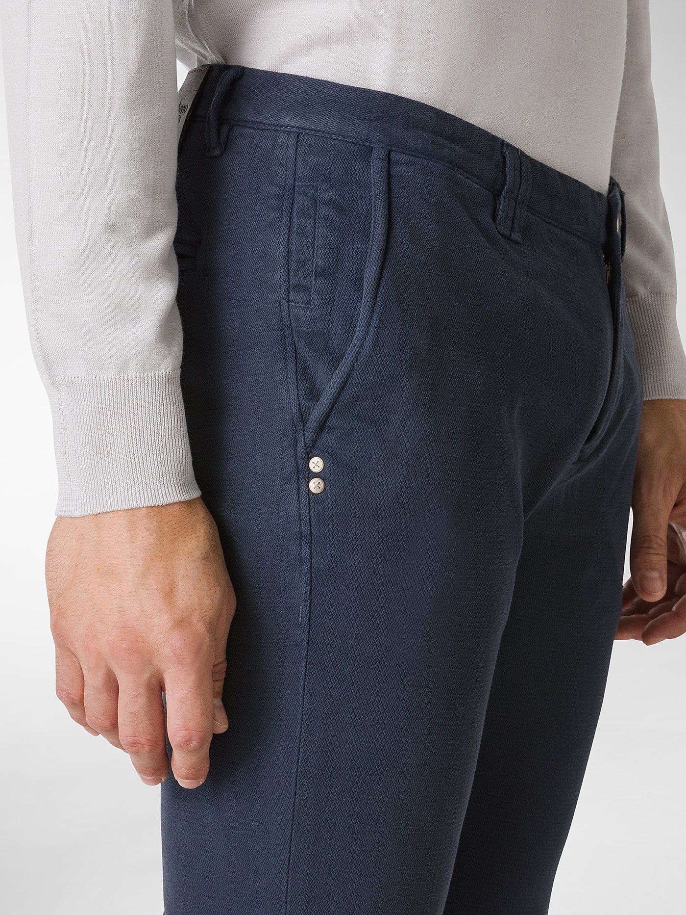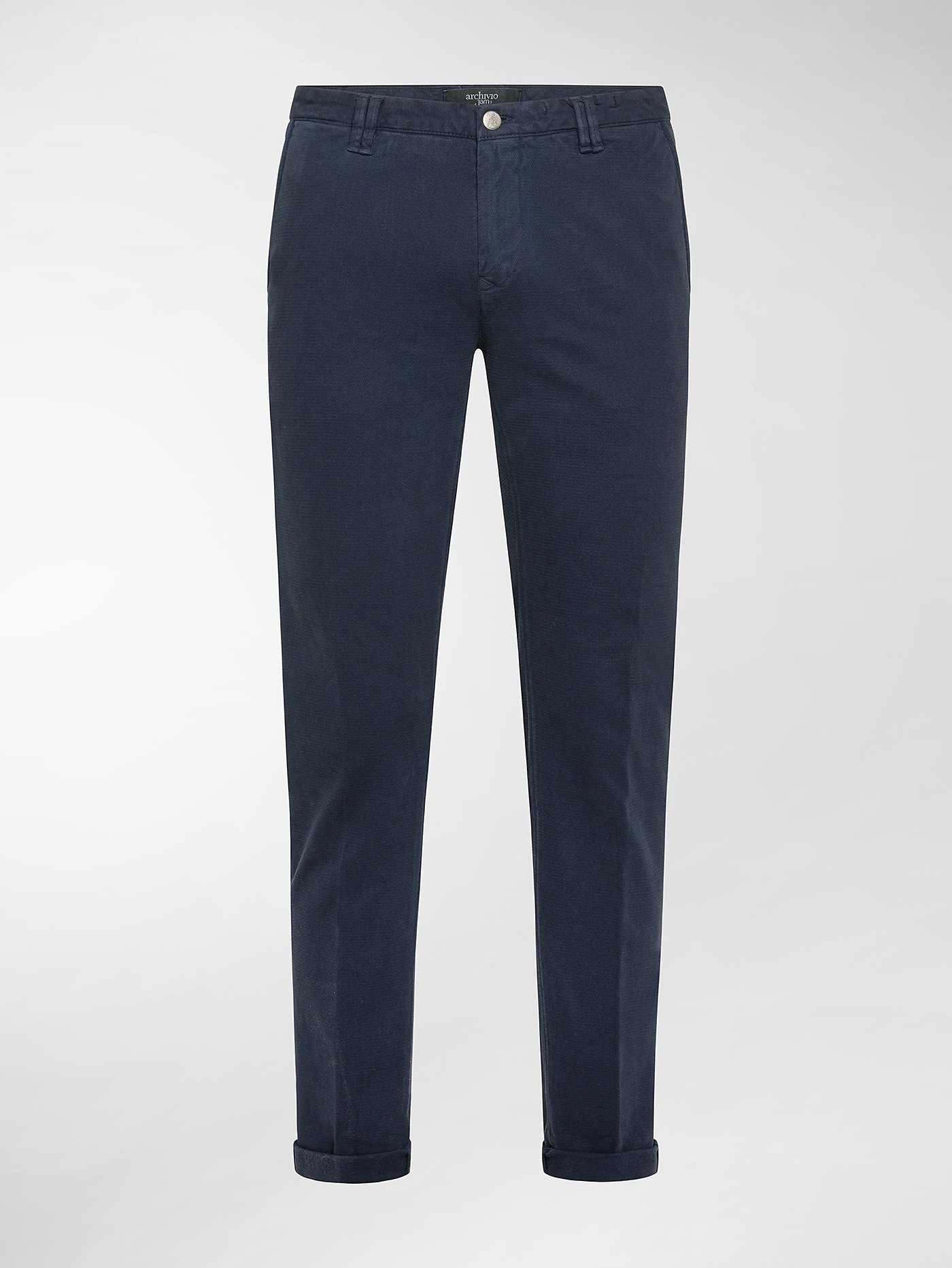 Clay è il nostro pantalone casual slim con tasca america, chiusura zip. Rappresenta il compagno ideale per il tempo libero ma le sue finiture sartoriali, l'attenzione maniacale per la vestibilità e la linea pulita lo rendono adatto anche ai look più urbani ed eleganti.Il capo è impreziosito da un tessuto in cotone armaturato elasticizzato tinto capo; i dettagli come il doppio passante, il cordino inserito sartorialmente come rinforzo ed estetica sul bordo tasca, la salpa in pelle identificano il brand e donano personalita' al capo. Il tutto è rigorosamente Made in Veneto.