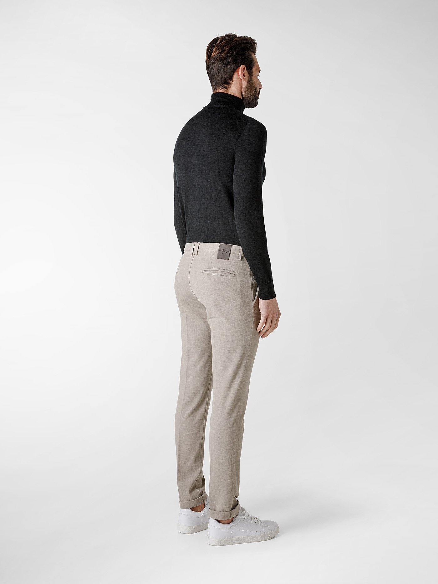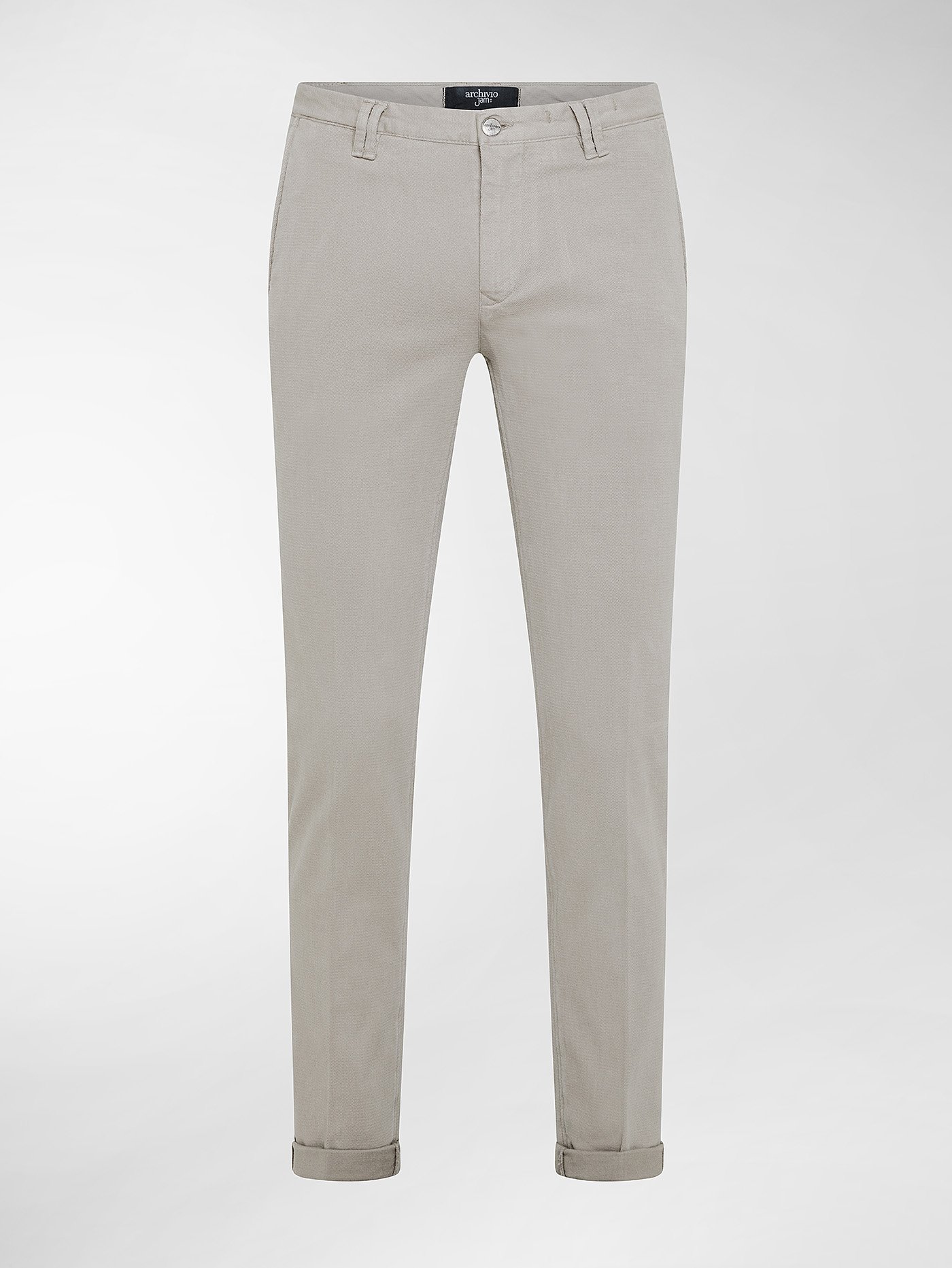 Pantalone da uomo Clay in cotone nido d'ape stretch tinto capo, chiusura con zip, tasche oblique frontali e tasche posteriori a filetto