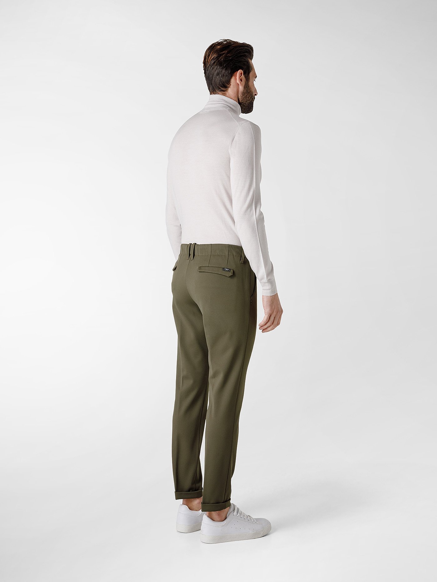 Pantalone Toto' jogging con coulisse in vita, elastico nella retrocinta, una pince fondo slim, tasche frontali stondate, tasche posteriori con pattina.