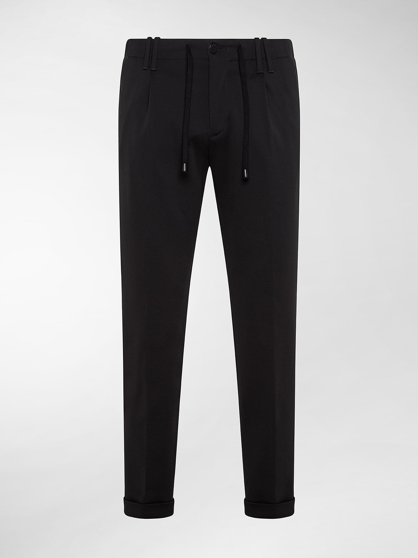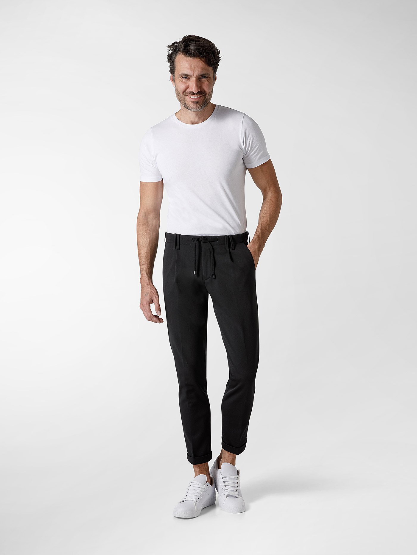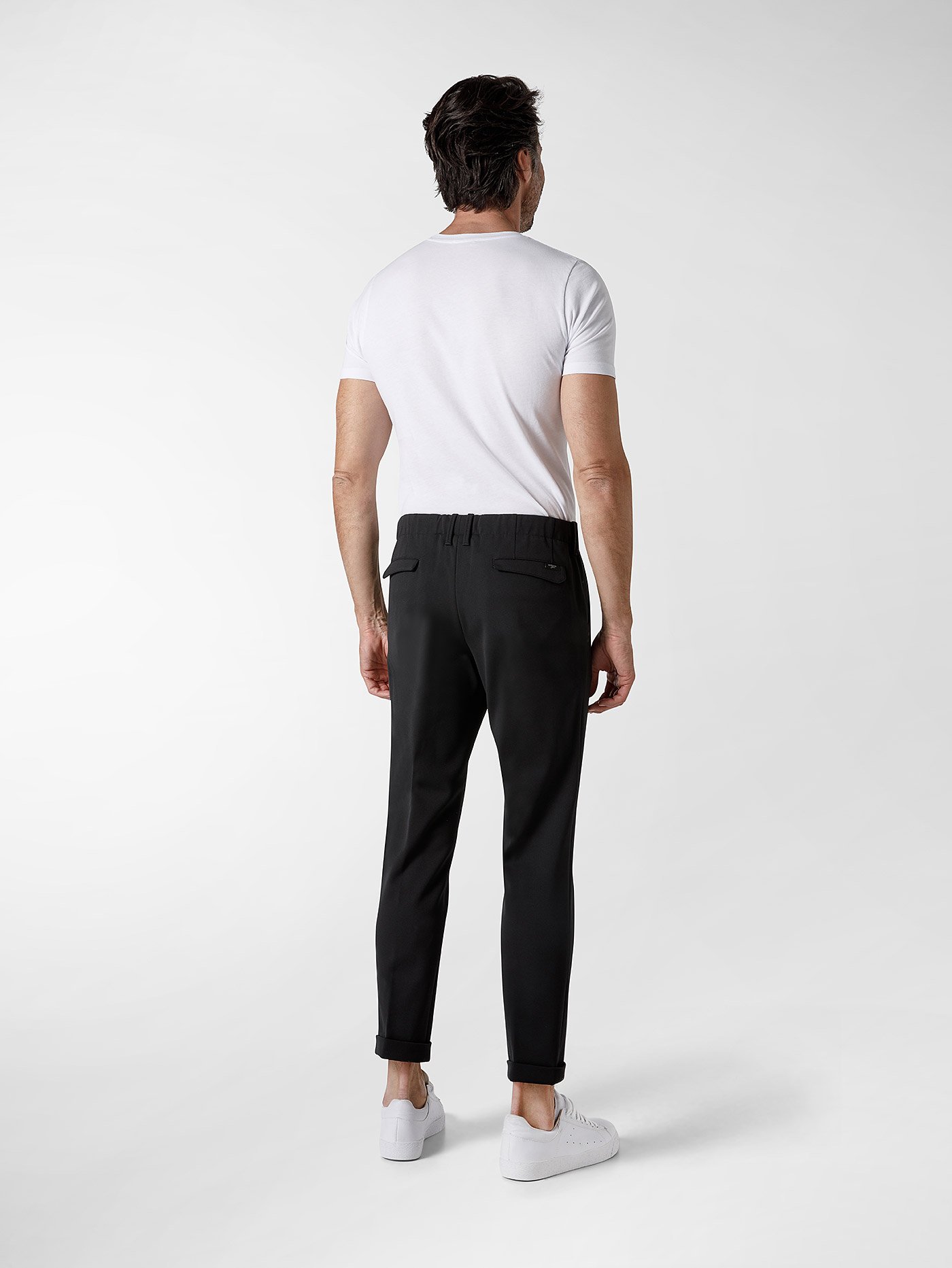 Toto'è il pantalone jogging di ultima generazione Archivio Jam: coulisse in vita, elastico sulla retrocinta, una pince fondo slim, tasche frontali stondate, tasche posteriori con pattina. Per questo modello associamo tessuti tecnici giapponesi ad alto contenuto per comfort ed innovazione derivante dal mondo dell'activewear. La trasversalità che può offire il pantalone Toto' è di indubbia valenza, abbinabile nel tempo libero piuttosto che nello smart working o in ufficio, magari raggiungendolo in e-bike. La confezioni di questi capi sono rigorosamente made in Veneto compresi accessori e stile.