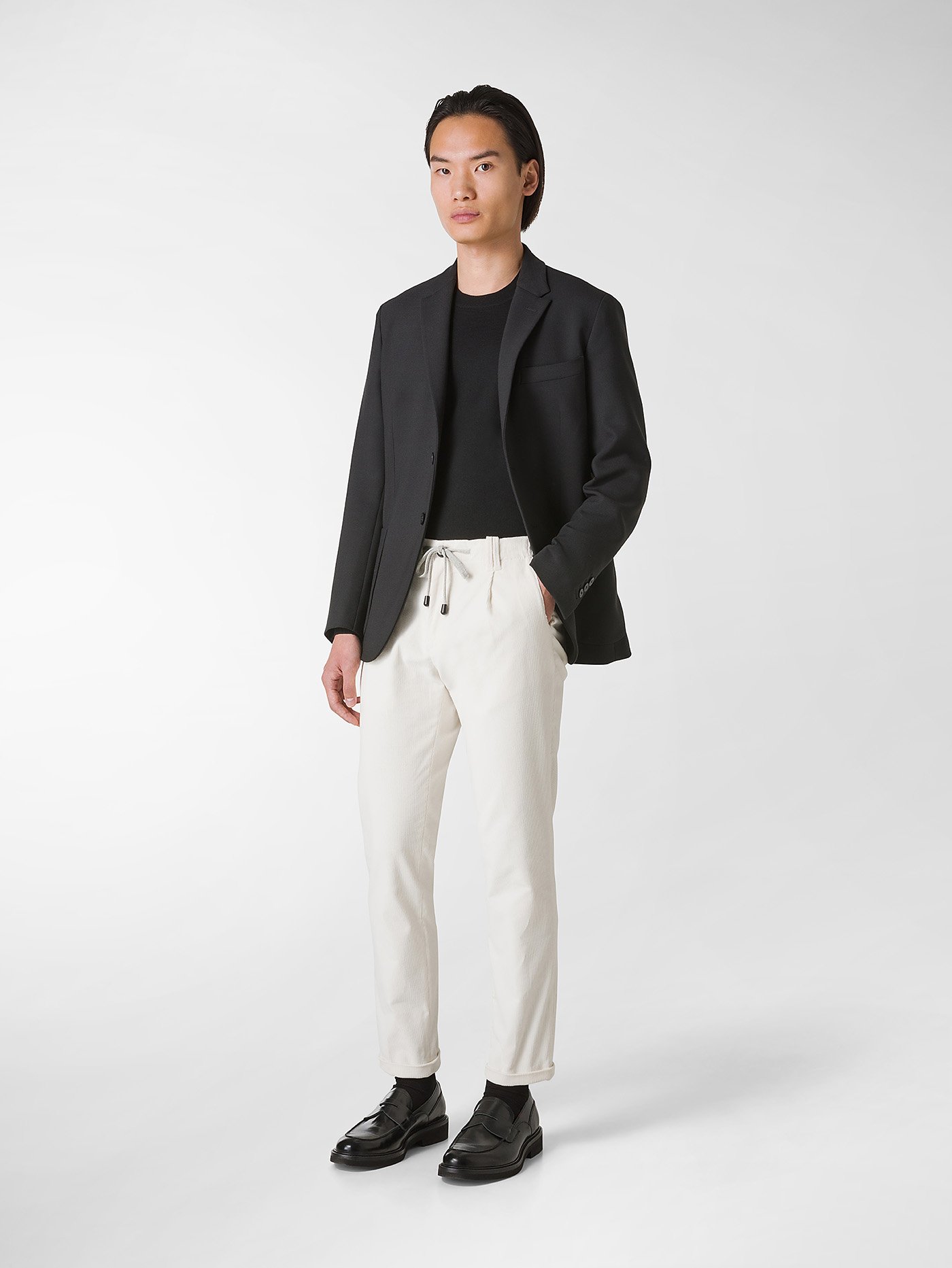 Toto'è il pantalone jogging di ultima generazione Archivio Jam: coulisse in vita, elastico sulla retrocinta, una pince fondo slim, tasche frontali stondate, tasche posteriori con pattina. Per questo modello abbiamo associato un velluto 1000 righe stretch con lo scopo di rompere gli schemi ed offrire un capo di indubbia valenza, abbinabile nel tempo libero piuttosto che nello smart working o in ufficio. Le confezioni di questi capi sono rigorosamente made in Veneto compresi tessuto accessori e stile.