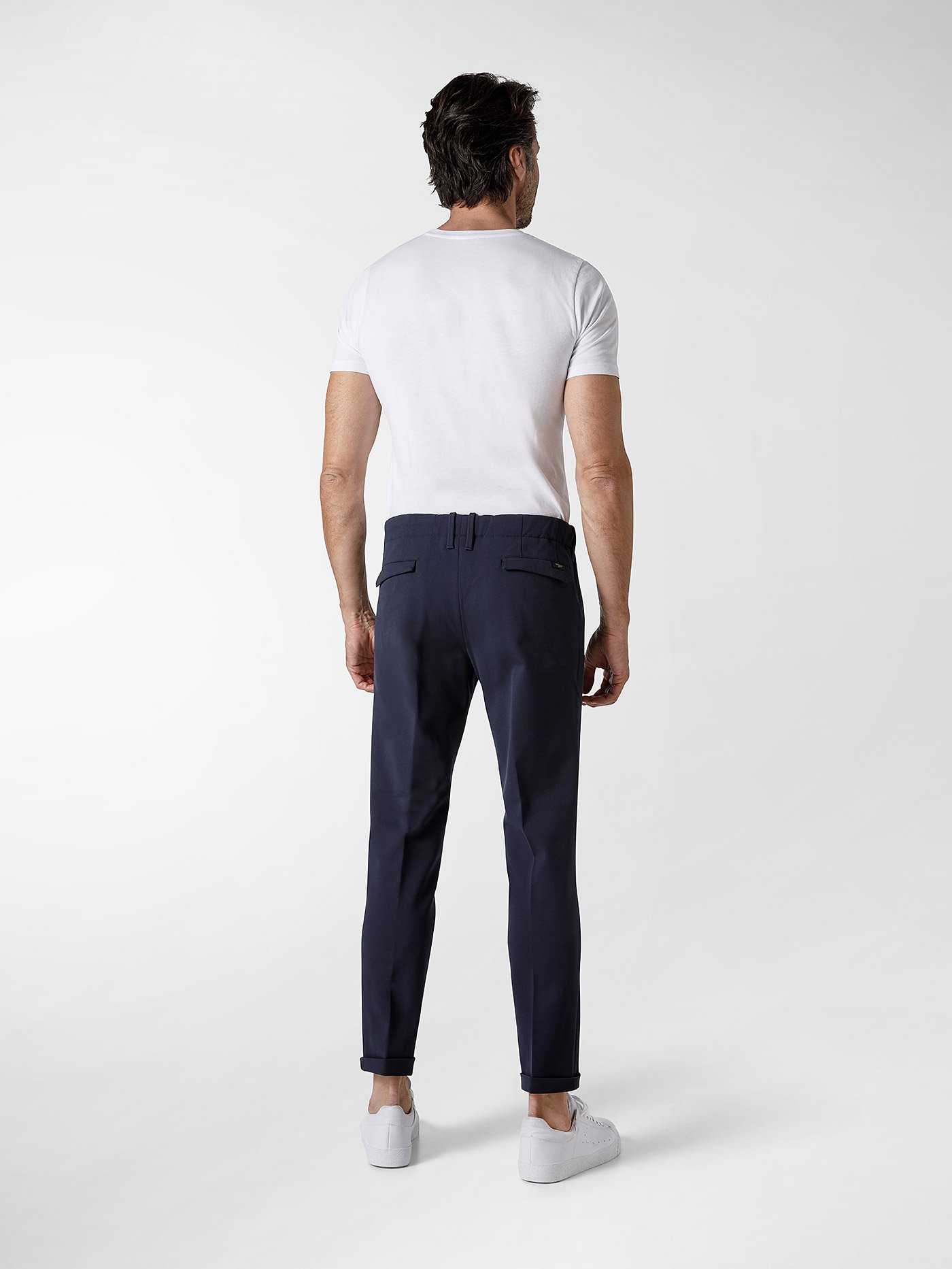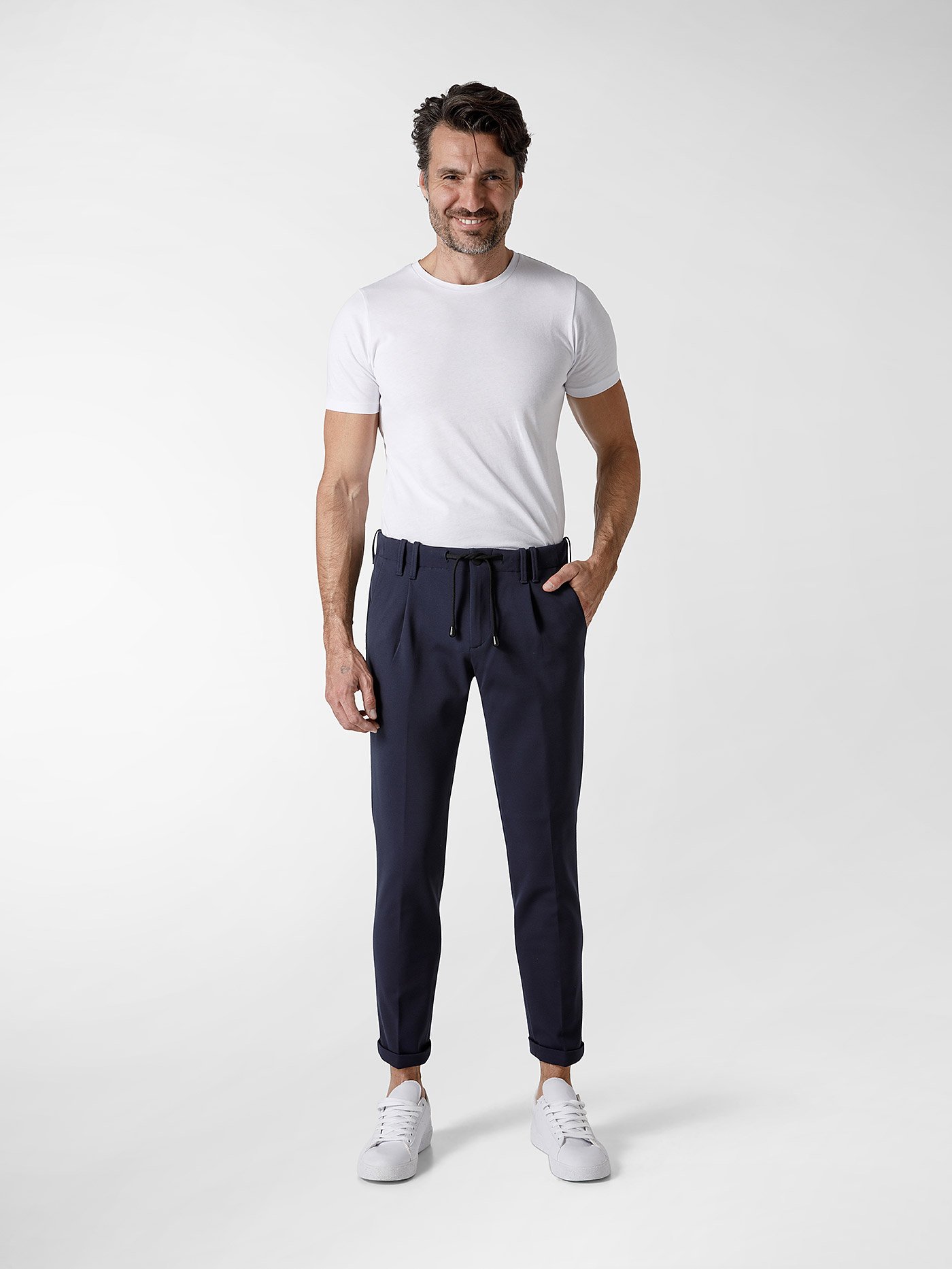 Toto'è il pantalone jogging di ultima generazione Archivio Jam: coulisse in vita, elastico sulla retrocinta, una pince fondo slim, tasche frontali stondate, tasche posteriori con pattina. Per questo modello associamo tessuti tecnici giapponesi ad alto contenuto per comfort ed innovazione derivante dal mondo dell'activewear. La trasversalità che può offire il pantalone Toto' è di indubbia valenza, abbinabile nel tempo libero piuttosto che nello smart working o in ufficio, magari raggiungendolo in e-bike. La confezioni di questi capi sono rigorosamente made in Veneto compresi accessori e stile.